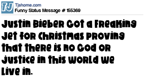 X says Justin Bieber Got a Freaking Jet for Christmas proving that there is no God or justice in this world we live in.