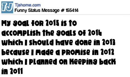 X says My goal for 2015 is to accomplish the goals of 2014 which I should have done in 2013 because I made a promise in 2012 which I planned on keeping back in 2011