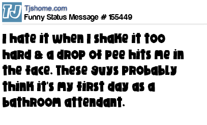 X says I hate it when I shake it too hard & a drop of pee hits me in the face. These guys probably think it's my first day as a bathroom attendant.