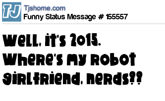 X Well, it's 2015. Where's my robot girlfriend, nerds??