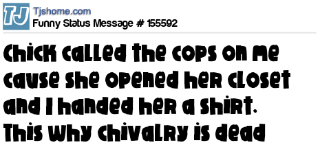 - # 163300 This lady called the cops on me cause she opened her closet and I handed her a blouse. And y'all wonder why chivalry is dead?