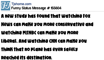 X says A new study has found that watching Fox News can make you more conservative and watching MSNBC can make you more liberal. And watching CNN can make you think that no plane has ever safely reached its destination.