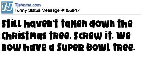 X Still haven't taken down the Christmas tree. Screw it. We now have a Super Bowl tree.