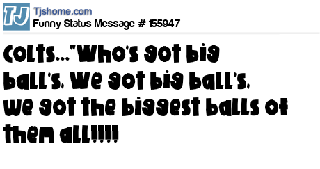 X Colts..."Who's got big ball's, We got big ball's, we got the biggest balls of them all!!!!