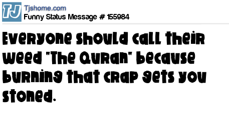 X Everyone should call their weed "The Quran" because burning that crap gets you stoned.