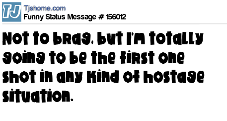 X says Not to brag, but I'm totally going to be the first one shot in any kind of hostage situation.