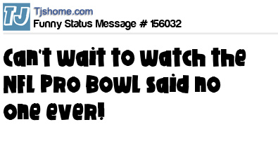 - # 144166 Can't wait for the NFL Pro Bowl tonight said no one ever.