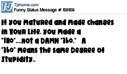 X says If you matured and made changes in Your life, you made a "180"....not a DAMN "360." A "360" means the same Degree of Stupidity..