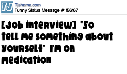 X says [job interview] "So tell me something about yourself" I'm on medication