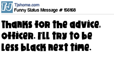 X says Thanks for the advice, officer. I'll try to be less black next time.