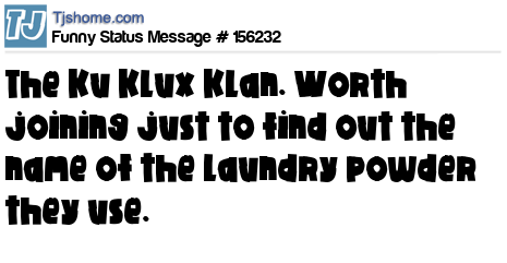- # 101213 The K.K.K. may be worth joining just to find out the name of the brilliant washing powder they use.