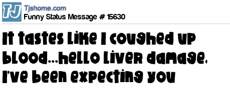 - # 25534 it tastes like I coughed up blood....hello liver damage, I've been expecting you.