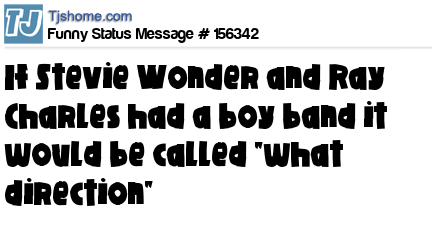 X says If Stevie Wonder and Ray Charles had a boy band it would be called "what direction"