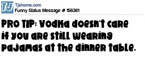 X says PRO TIP: Vodka doesn't care if you are still wearing pajamas at the dinner table.