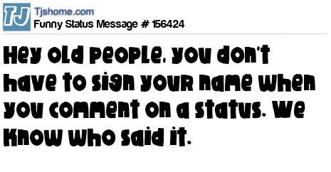 X Hey old people, you don't have to sign your name when you comment on a status. We know who said it.