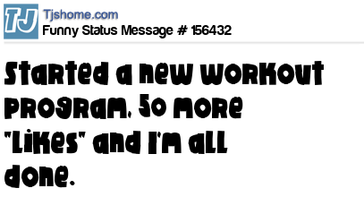 X says Started a new workout program, 50 more "likes" and I'm all done.