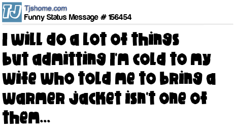 X says I will do a lot of things but admitting I'm cold to my wife who told me to bring a warmer jacket isn't one of them...