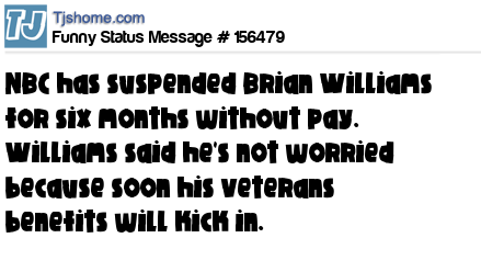 X says NBC has suspended Brian Williams for six months without pay. Williams said he's not worried because soon his veterans benefits will kick in.