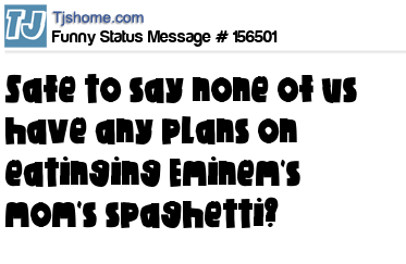 X says Safe to say none of us have any plans on eatinging Eminem's mom's spaghetti?
