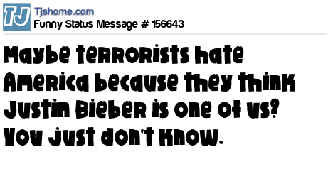 X says Maybe terrorists hate America because they think Justin Bieber is one of us? You just don't know.