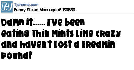 X says Damn it...... I've been eating Thin Mints like crazy and haven't lost a freakin pound?