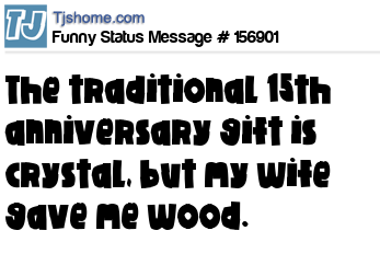X says the traditional 15th anniversary gift is crystal, but my wife gave me wood.