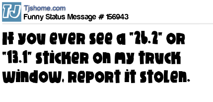 X says If you ever see a "26.2" or "13.1" sticker on my truck window, report it stolen.