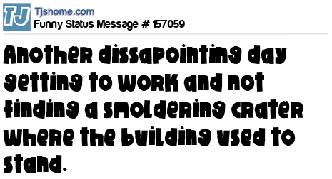 X says Another dissapointing day getting to work and not finding a smoldering crater where the building used to stand.