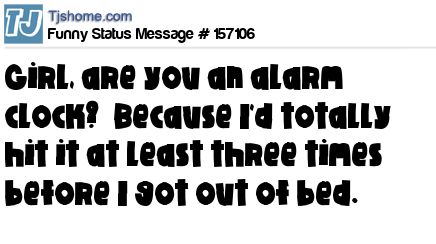 X says Girl, are you an alarm clock?  Because I'd totally hit it at least three times before I got out of bed.