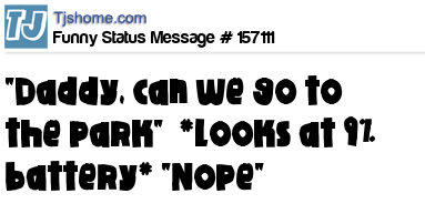 X says "Daddy, can we go to the park"  *looks at 9% battery* "Nope"