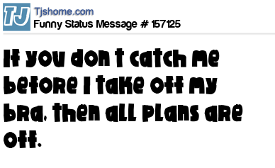 X says If you don’t catch me before I take off my bra, then all plans are off.