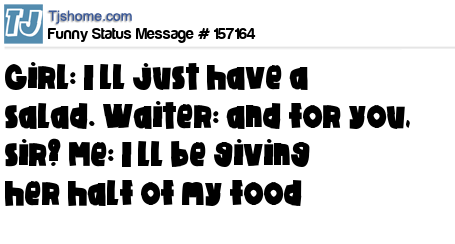 X says Girl: I’ll just have a salad. Waiter: and for you, sir? Me: I’ll be giving her half of my food