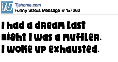 - # 192393 Last night I dreamed that I was a muffler. When I woke up I was exhausted.