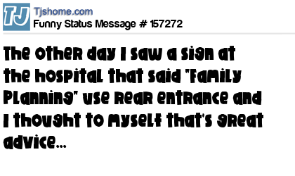 - # 24932 Saw a sign at the hospital that said "Family Planning.... Use Rear Entrance". I thought it was good advice.