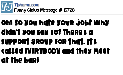 - # 59386 Oh you hate your job? Theres a support group for that, its called everybody. They meet at the bar.