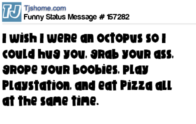 X says I wish I were an octopus so I could hug you, grab your ass, grope your boobies, play Playstation, and eat Pizza all at the same time.