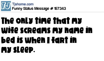 - # 158277 The only time your woman screams your nam ein bed is when you fart in your sleep.