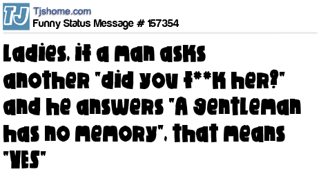 X says Ladies, if a man asks another "did you f**k her?" and he answers "A gentleman has no memory", that means "YES"