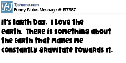 - # 158106 Don't let anyone use Earth Day as an excuse to peer pressure you into going outside. Your couch and your bed are both located on Earth too.