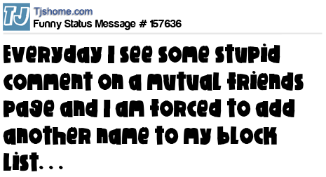 X says Everyday I see some stupid comment on a mutual friends page and I am forced to add another name to my block list. . .