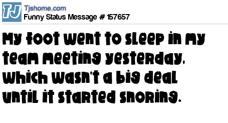 X says My foot went to sleep in my team meeting yesterday, which wasn't a big deal until it started snoring.
