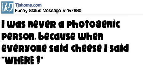X says I was never a photogenic person, because when everyone said cheese I said "WHERE ?"