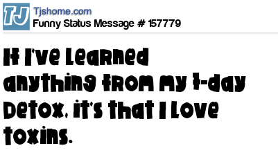 X says If I've learned anything from my 7-day Detox, it's that I love toxins.