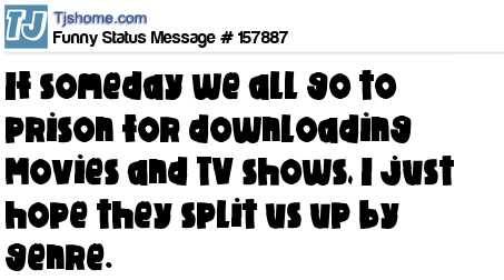 X says If someday we all go to prison for downloading Movies and TV shows, I just hope they split us up by genre.