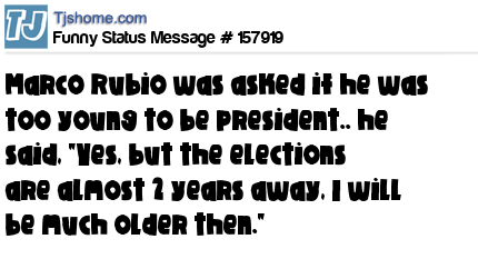 X says Marco Rubio was asked if he was too young to be president.. he said, "Yes, but the elections are almost 2 years away, I will be much older then."