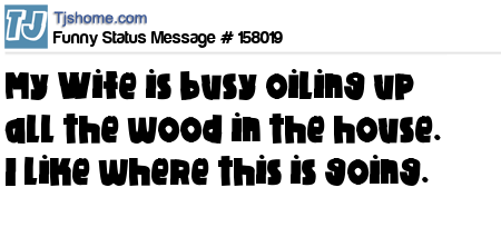 X says my Wife is busy oiling up all the wood in the house. I like where this is going.