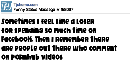X says Sometimes I feel like a loser for spending so much time on Facebook. Then I remember there are people out there who comment on pornhub videos