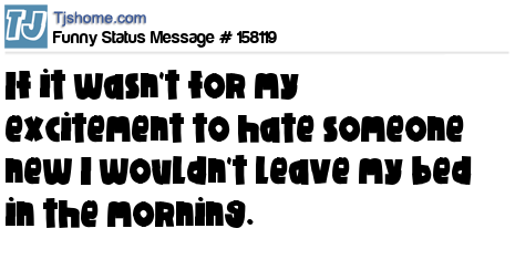 X says If it wasn't for my excitement to hate someone new I wouldn't leave my bed in the morning.