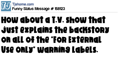 X  How about a T.V. show that just explains the backstory on all of the "For External Use Only" warning labels.