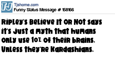 X says Ripley's Believe It Or Not says it's just a myth that humans only use 10% of their brains. Unless they're Kardashians.